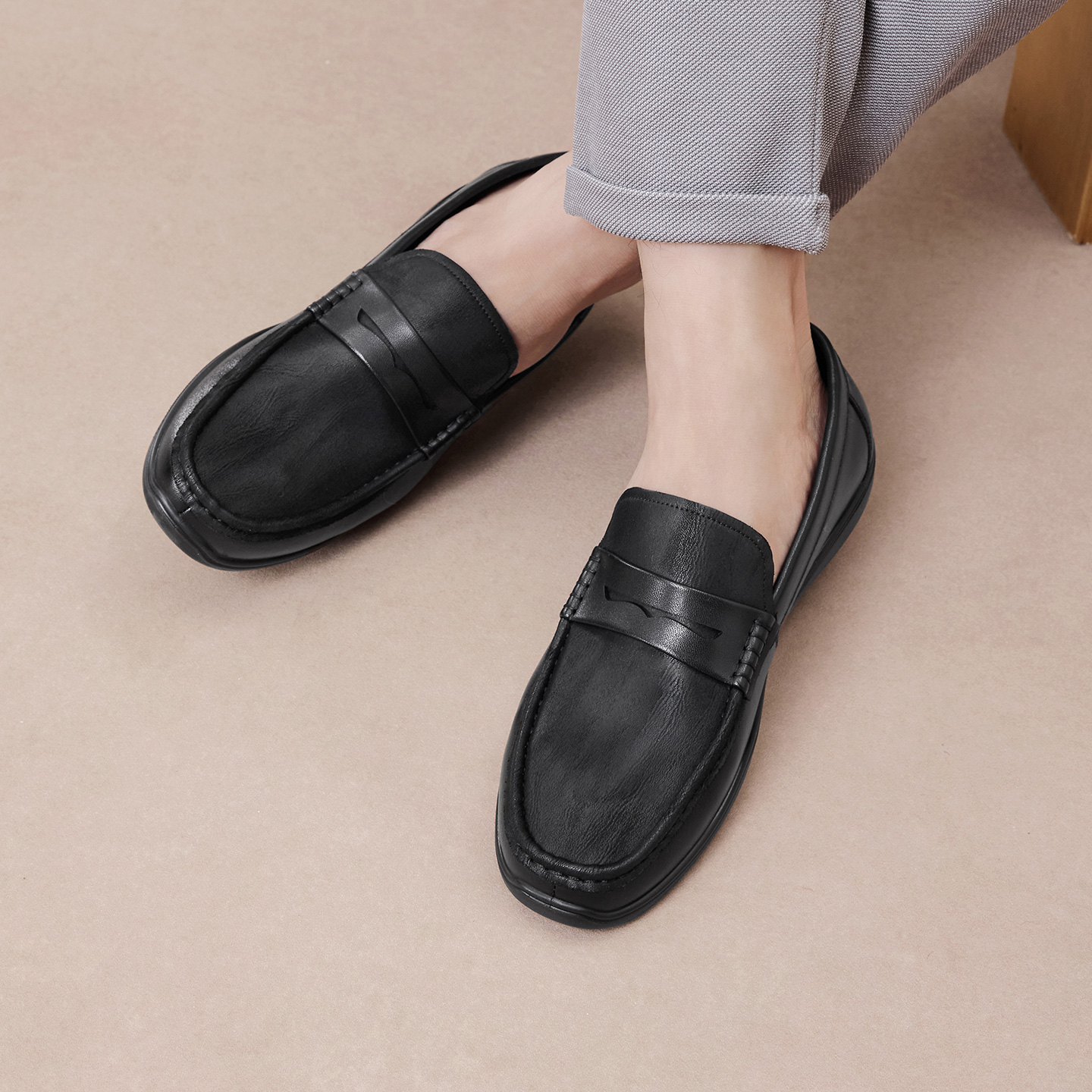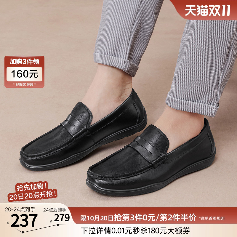 皮鞋 商务通勤男休闲豆豆鞋 51727CM5 真皮乐福鞋 百思图25秋商场新款
