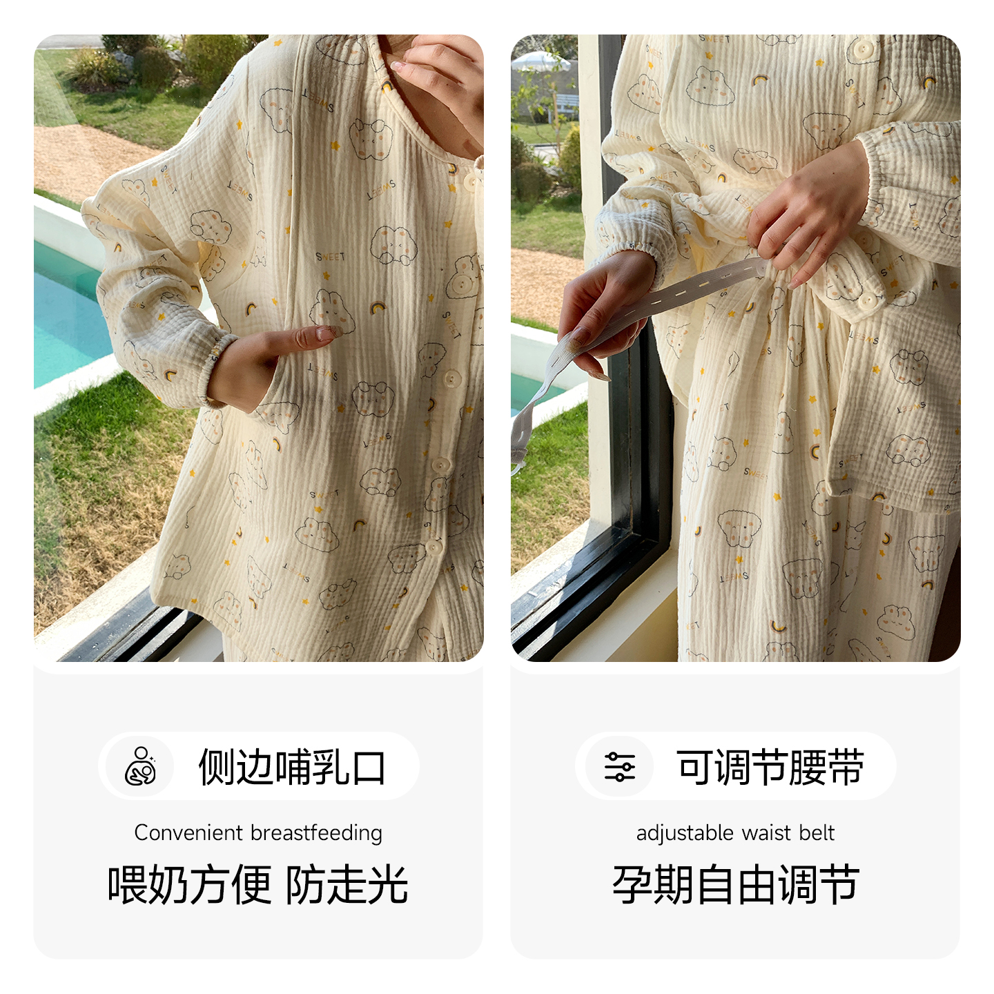 全棉纱布孕妇睡衣夏天67月份产妇哺乳装 康喜月纯棉月子服夏季 薄款