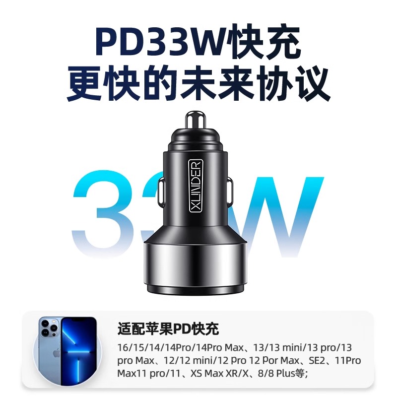 适用于苹果16promax车载充电器手机超级快充15汽车点烟器转换插头