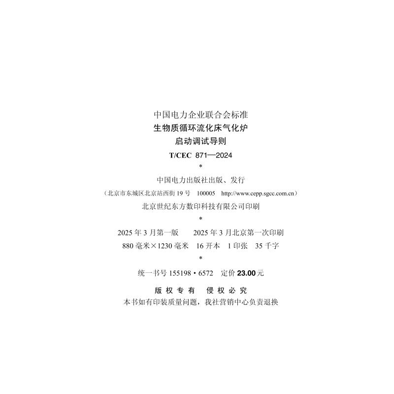 871—2024 T/CEC 生物质循环流化床气化炉启动调试导则 按需印刷