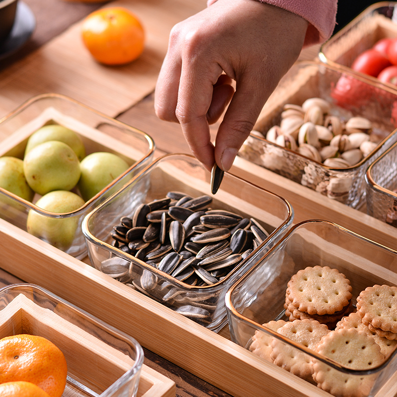 玻璃水果盘带木托新款 2025家用客厅茶几高颜值干果零食盘茶点盘