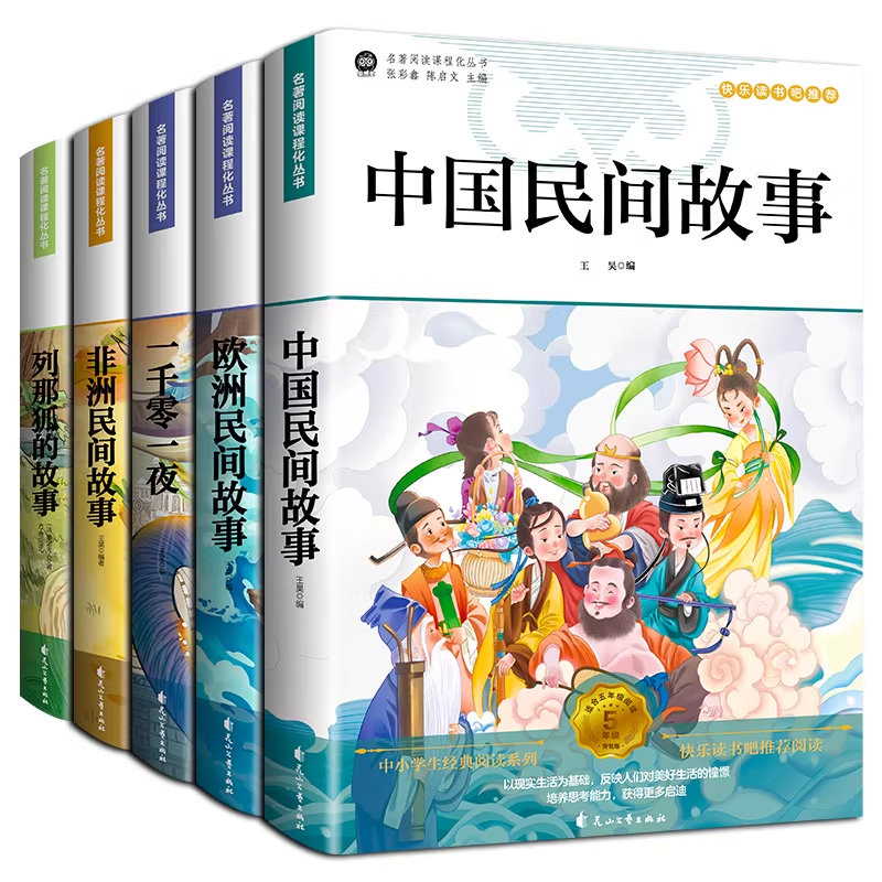 故事一千零一夜小学生阅读推荐 中国民间故事五年级上册快乐读书吧必读 完整5上列那狐 欧洲非洲民间正版 田螺姑娘 课外书全套5册