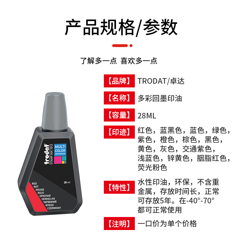 卓达7011印油欧洲进口水性回墨印油多彩系列彩色印油套色渐变色印章印油印泥7012印油环保印油墨红黑蓝荧光粉
