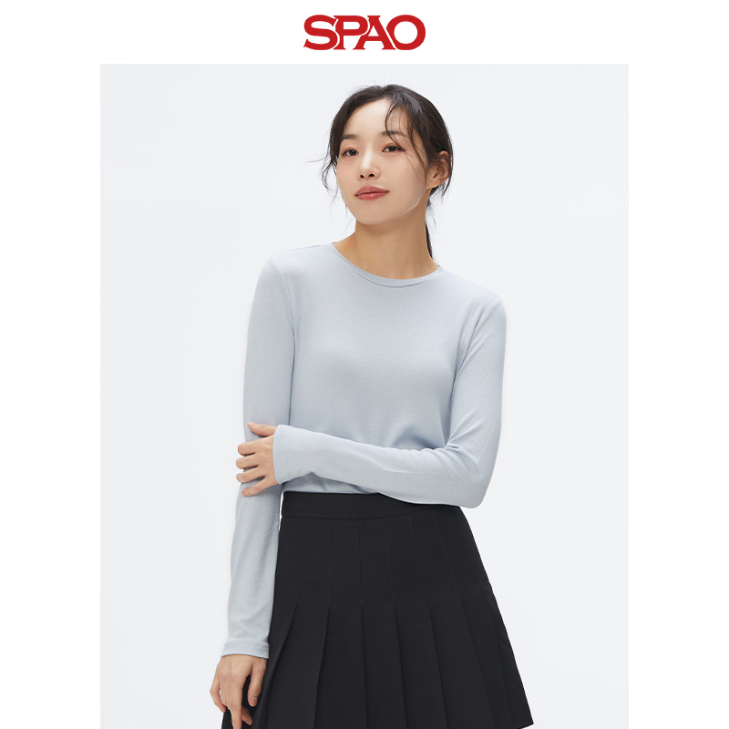 SPAO韩国同款 T恤 25年春秋女士通勤纯色基础长袖