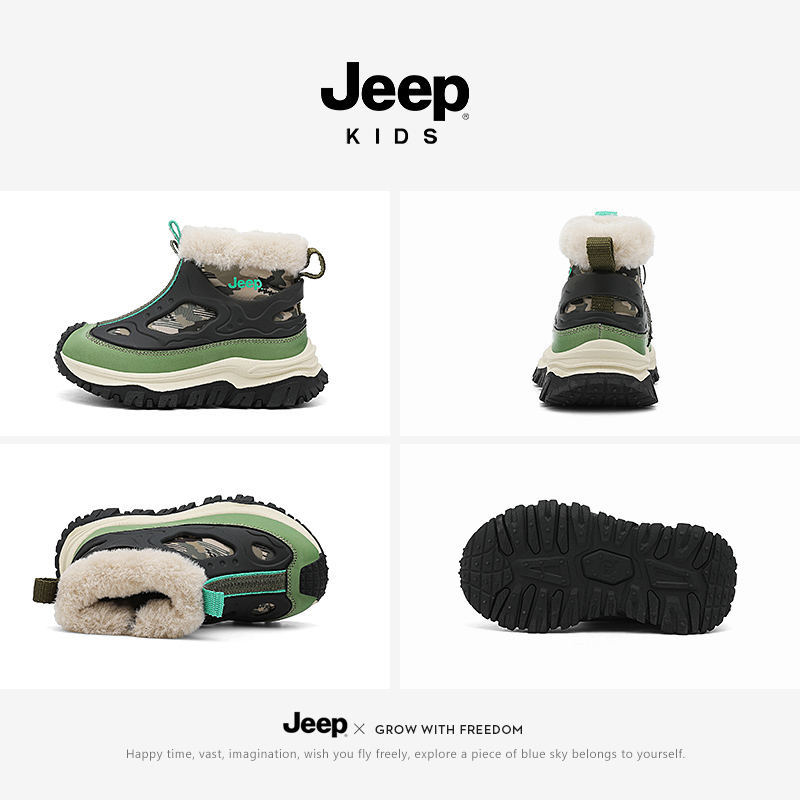 jeep儿童马丁靴2025新款 秋冬棉靴户外防滑女童登山靴子男童大黄靴