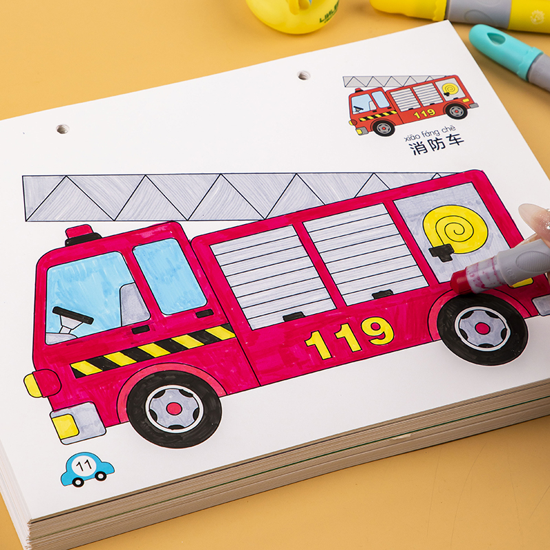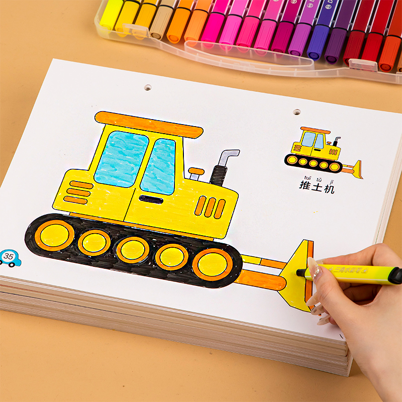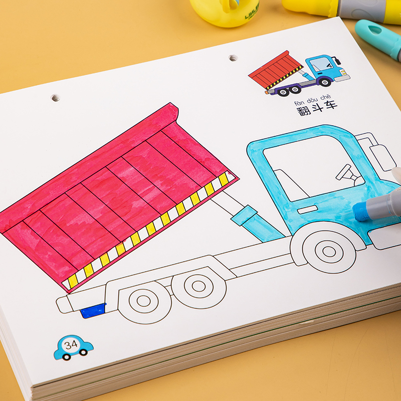 工程车涂色本马克笔绘本3 6岁幼儿园儿童交通工具a4图画画本男孩