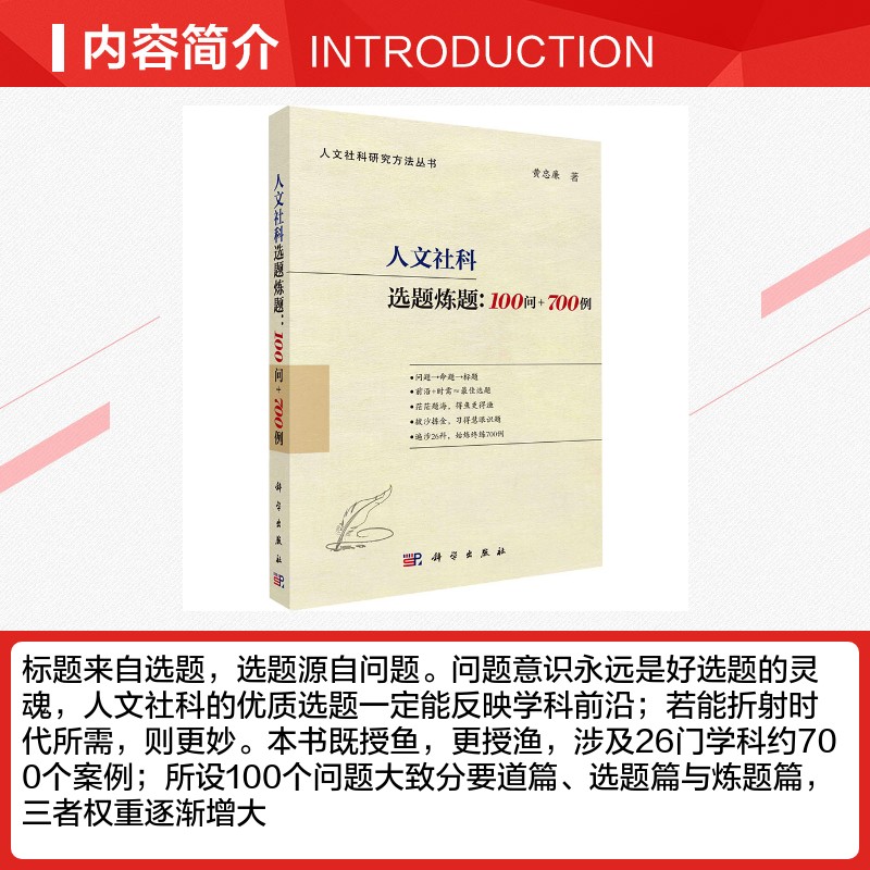 励志 社 700例 科学出版 图书籍 新华书店正版 社会科学总论经管 著 黄忠廉 100问 人文社科选题炼题