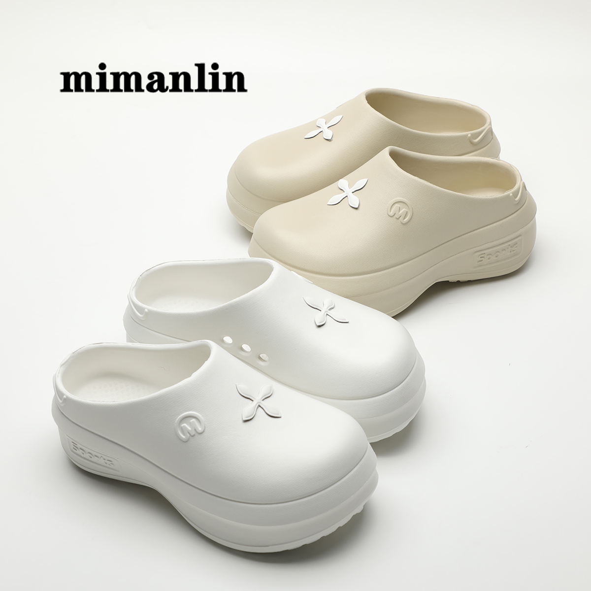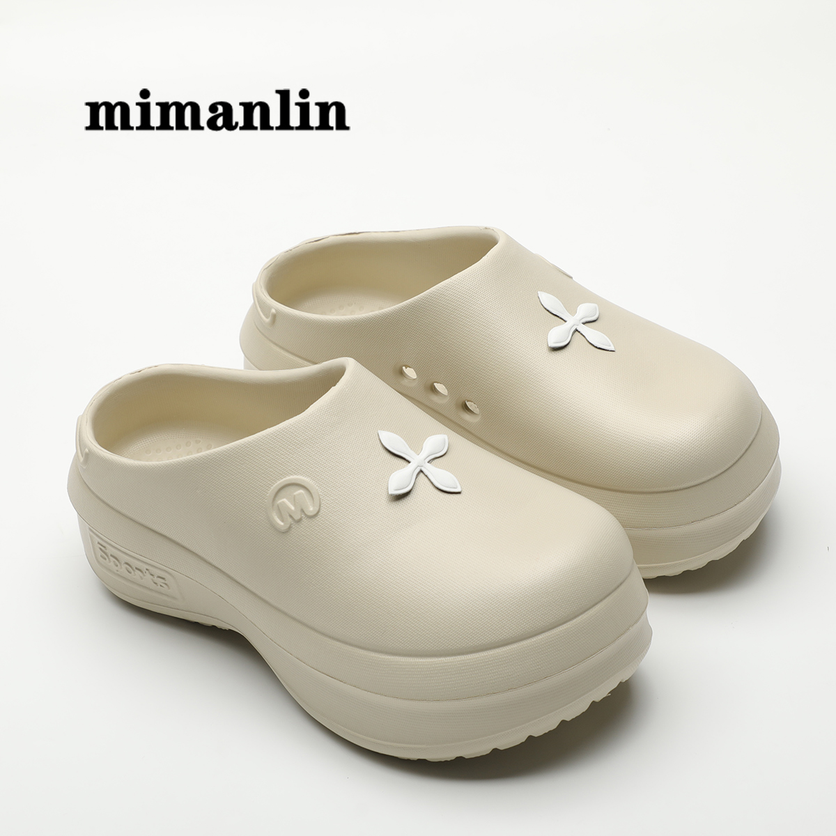 女夏季 洞洞鞋 外穿十字新款 包头半拖鞋 防滑防水雨鞋 增高厚底厨师鞋