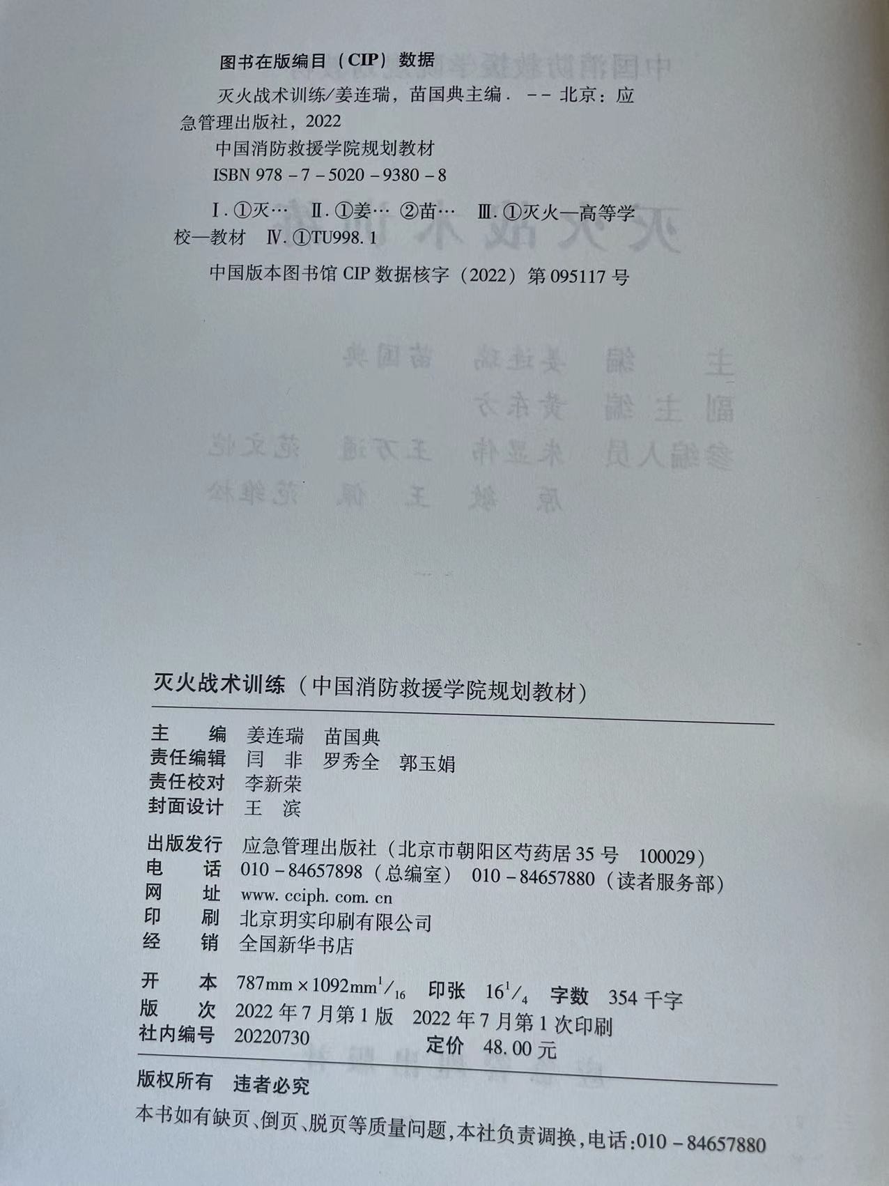 应急管理出版 9787502093808 社 中国消防救援学院规划教材 灭火战术训练