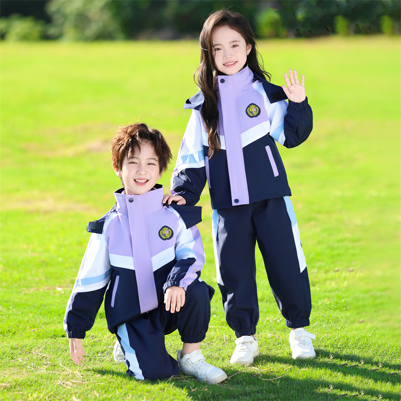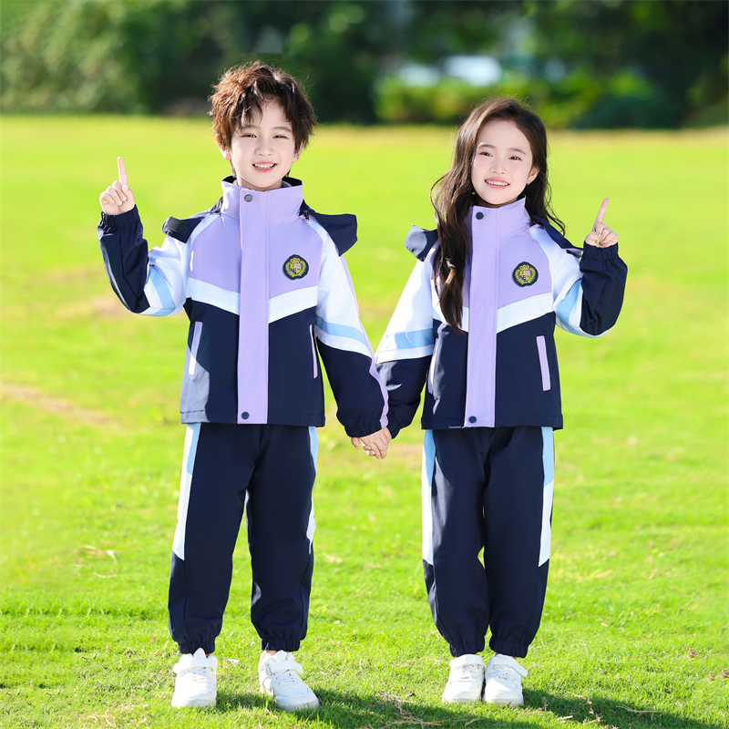 幼儿园园服春秋冬季 冲锋衣三件套小学生校服紫色运动服儿童班服装
