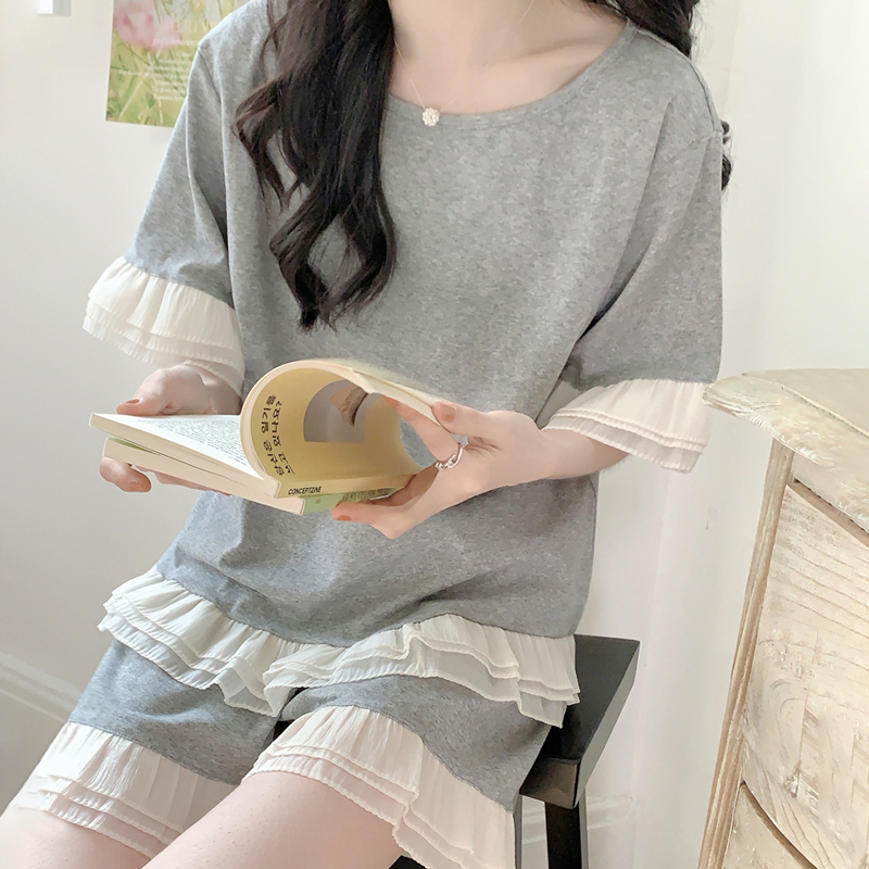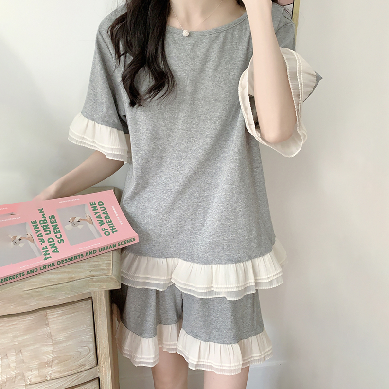 夏天家居服套装 睡衣女士纯棉布料100全棉短袖 夏季 带胸垫2025新款