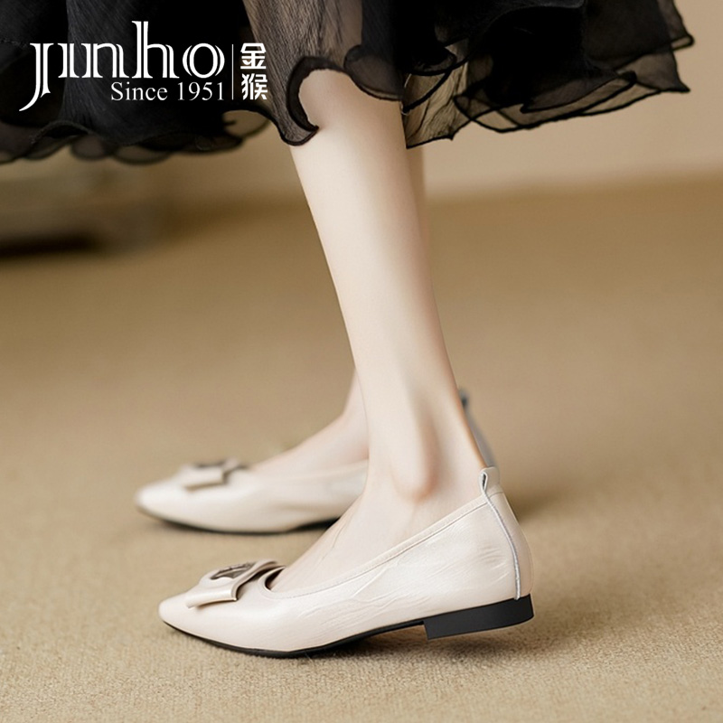 新款 女鞋 女士温柔蝴蝶结浅口单鞋 淑女平底单鞋 法式 热风2025年夏季