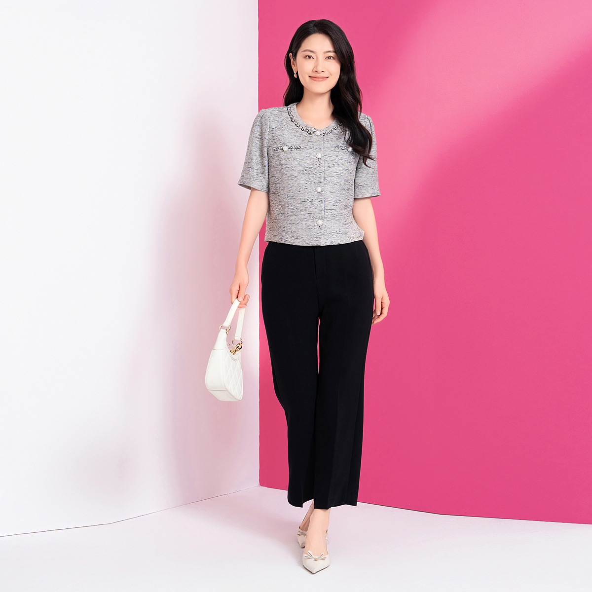女春秋新款 休闲直筒慵懒松弛感裤 高腰垂感窄版 裤 子 西装 黑色阔腿裤