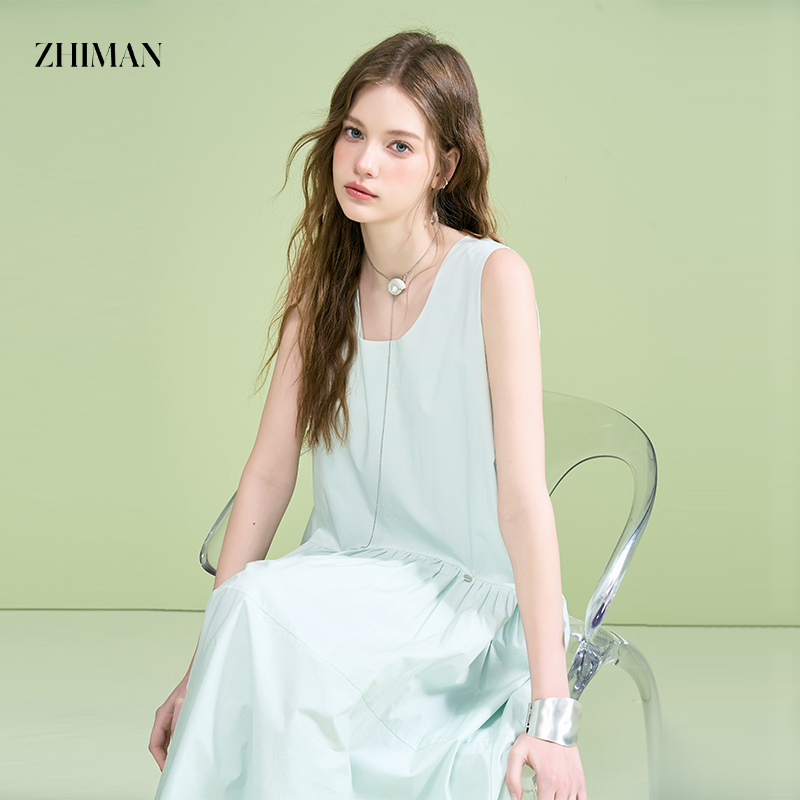 至漫ZHIMAN 背心连衣裙女宽松伞裙慵懒风 80支水洗精梳棉抽褶无袖