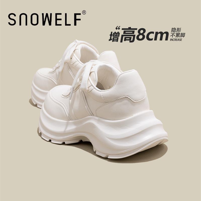 轻便松糕休闲运动鞋 粉色厚底真皮老爹鞋 新款 2025春季 系带增高女鞋