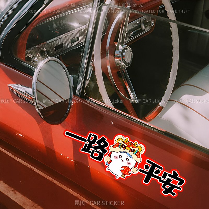 2025新年吉伊卡哇卡通车贴汽车车身遮挡刮痕装 饰电动车贴一路平安