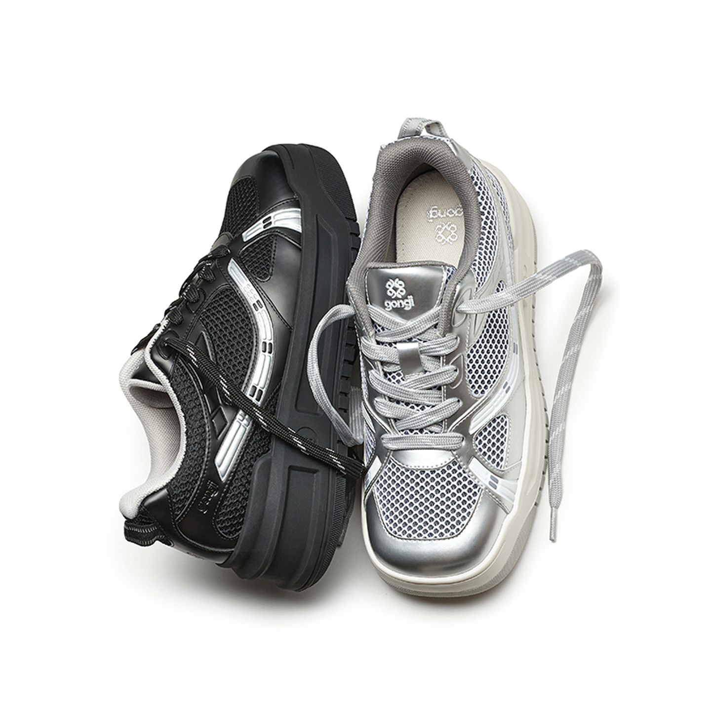 透气银色老爹鞋 方头增高软底休闲运动鞋 女2025新款 GONGJI厚底板鞋