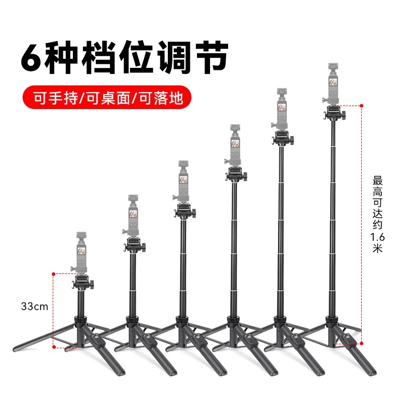 手持落地两用支架适用DJI大疆Pocket3灵眸口袋Pocket2配件延长自拍杆DJI 3运动相机支架延长杆三脚架 Pocket