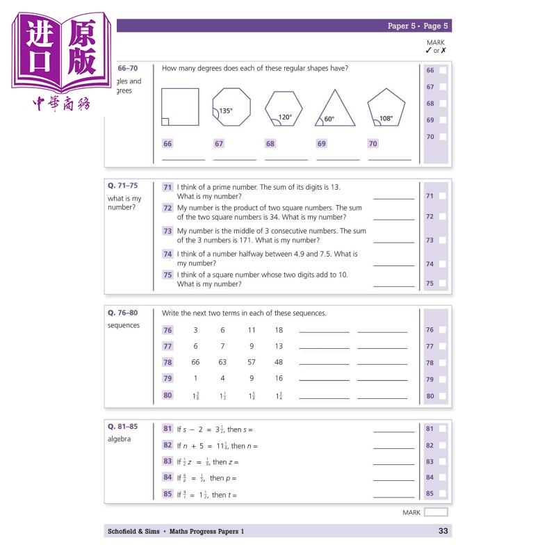 KS2 数学进步试卷1 Papers Maths CEM考试备考 进口图书 有答案 中商原版 12岁 Progress 英文原版 英国S&S教辅