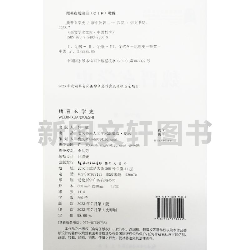精装 崇文学术文库·中国哲学:魏晋玄学史 9787540373009崇文书局 现货新书 正版