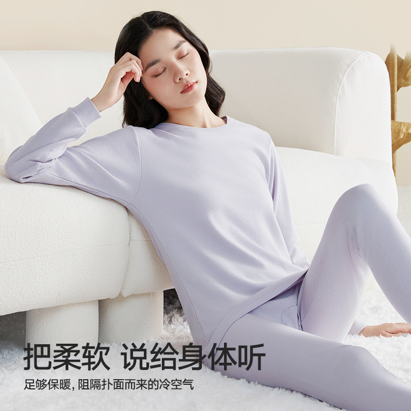 HLA 海澜之家秋冬女士圆领棉质抑菌防螨柔软亲肤舒适保暖内衣套装