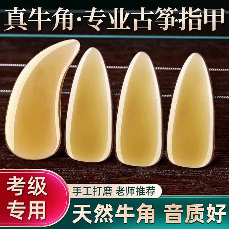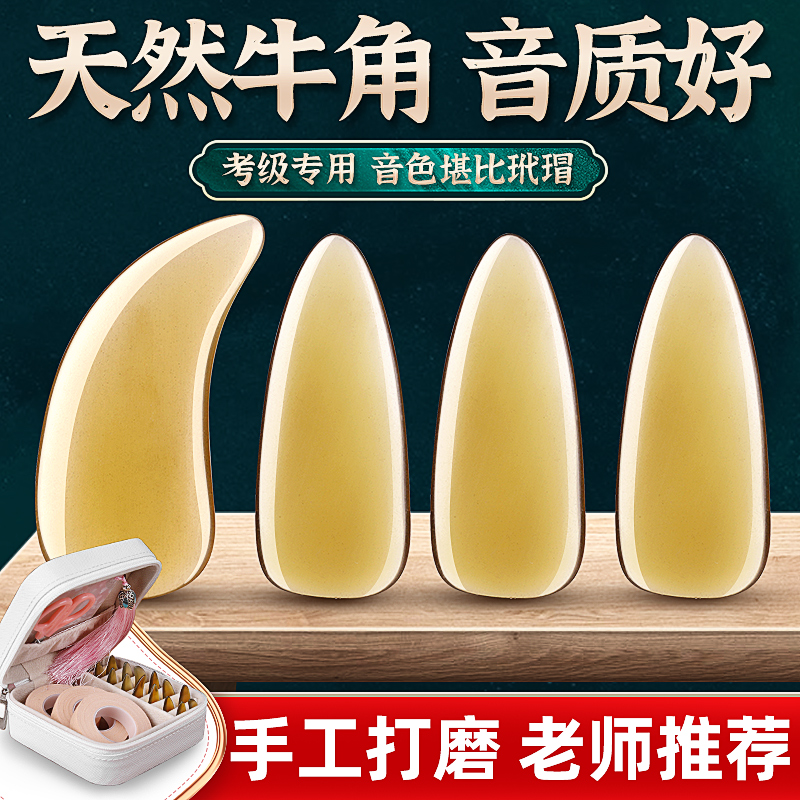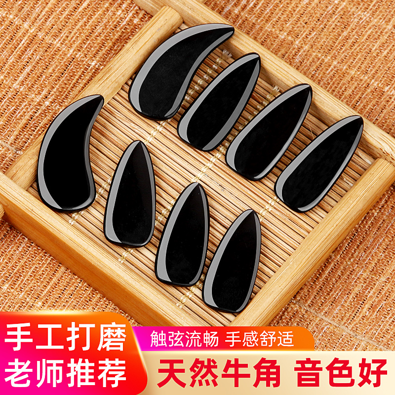 古筝牛角指甲专业演奏级儿童成人凹槽义甲天然牛角双面弧摇指神器