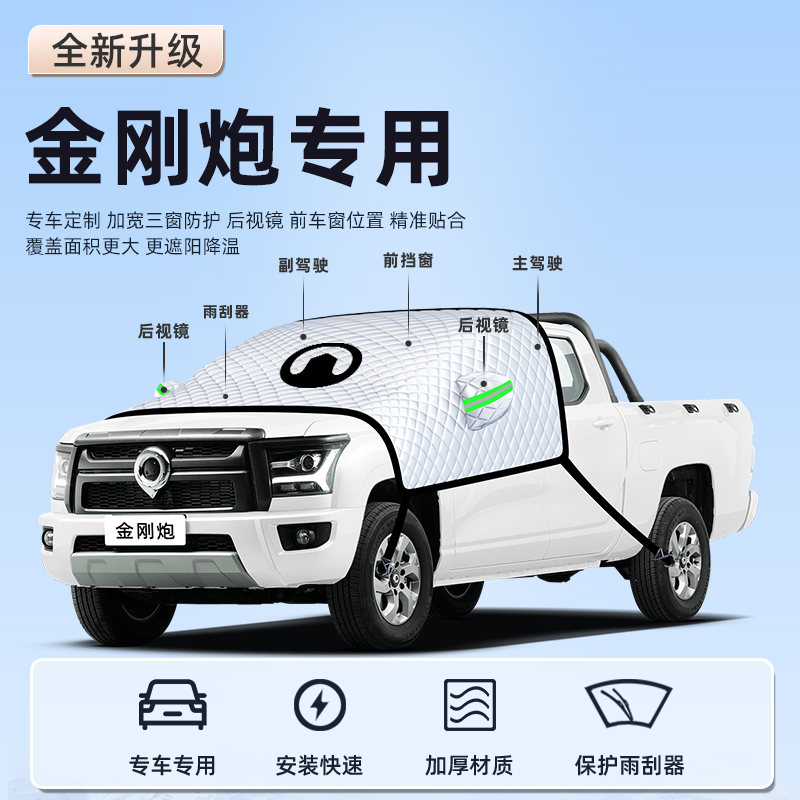 长城金刚炮汽车防晒隔热遮阳挡伞板帘前挡风玻璃罩用品改装 件车衣
