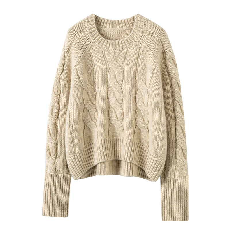 女士羊绒衫 春竹100%山羊绒季 针织衫 宽松气质无缝圆领套衫 新款