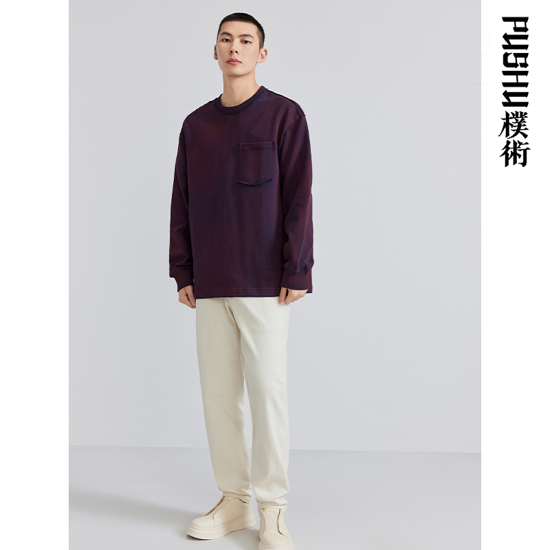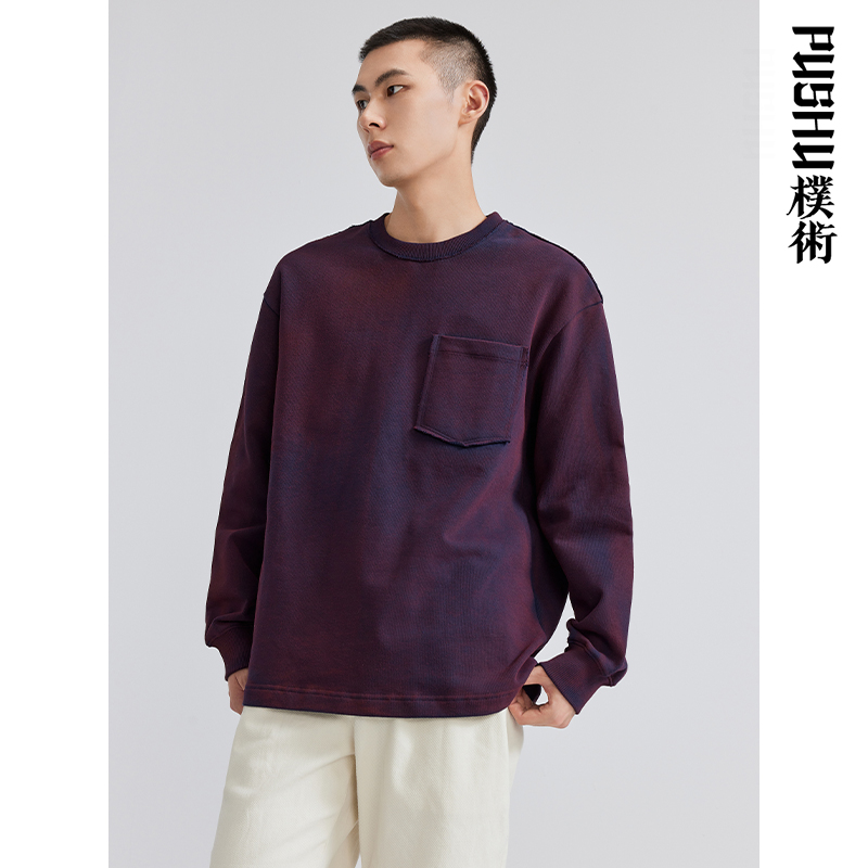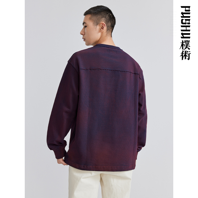 纯棉渐变混色日系复古风宽松圆领无帽长袖 新款 卫衣 春秋季 朴术男装