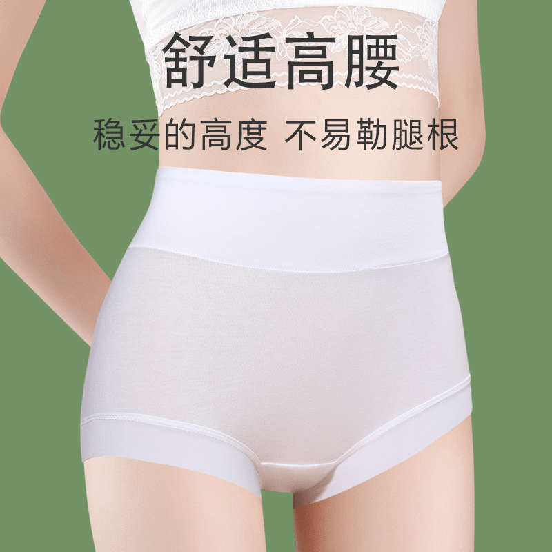 轻收腹 女纯棉无痕平角100%全棉裆抗菌大码 蝶安芬高腰白色女式 内裤
