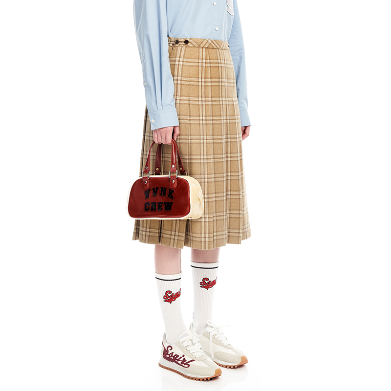 desire复古膝上直筒格纹波点半身裙25秋新款 orange 假日胶片