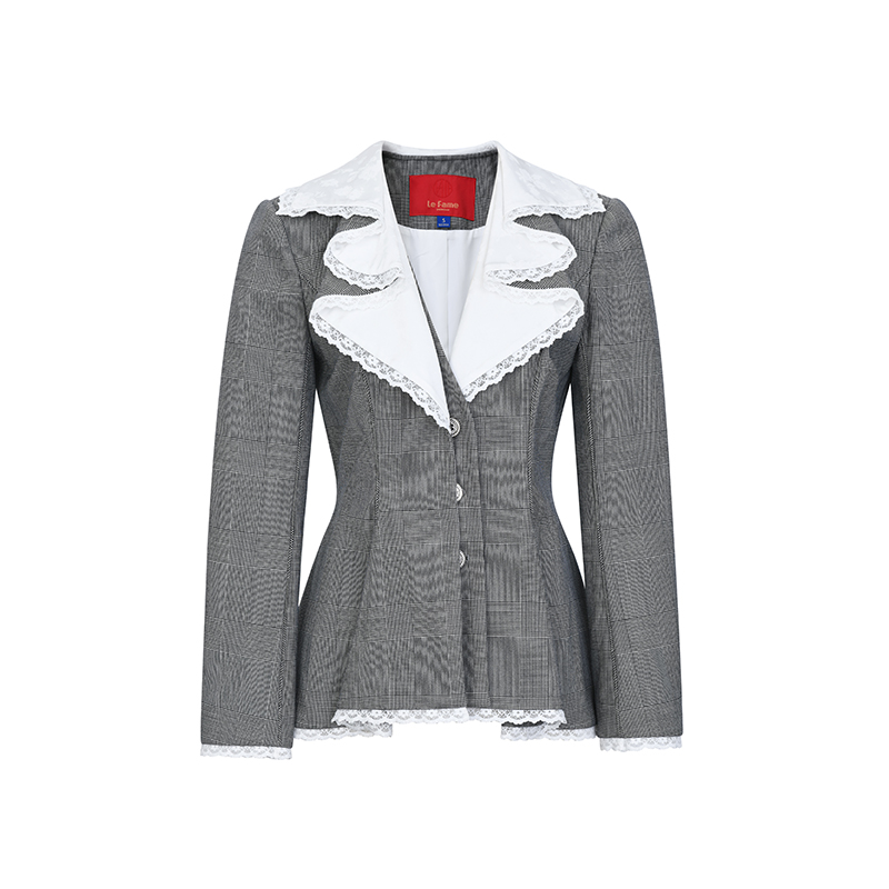 lefame拉飞姆缎面提花拼接蕾丝花边收腰西装 外套
