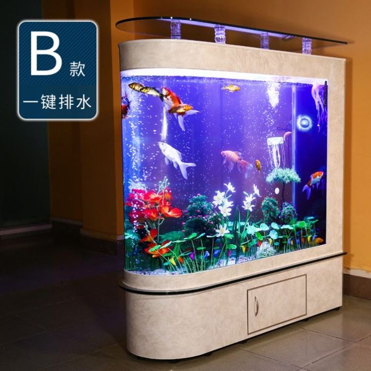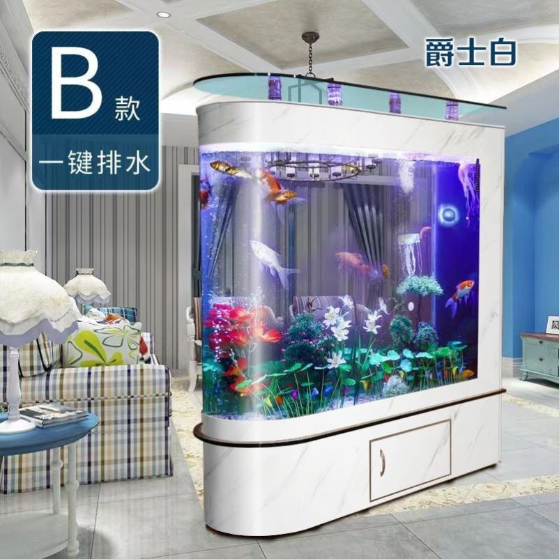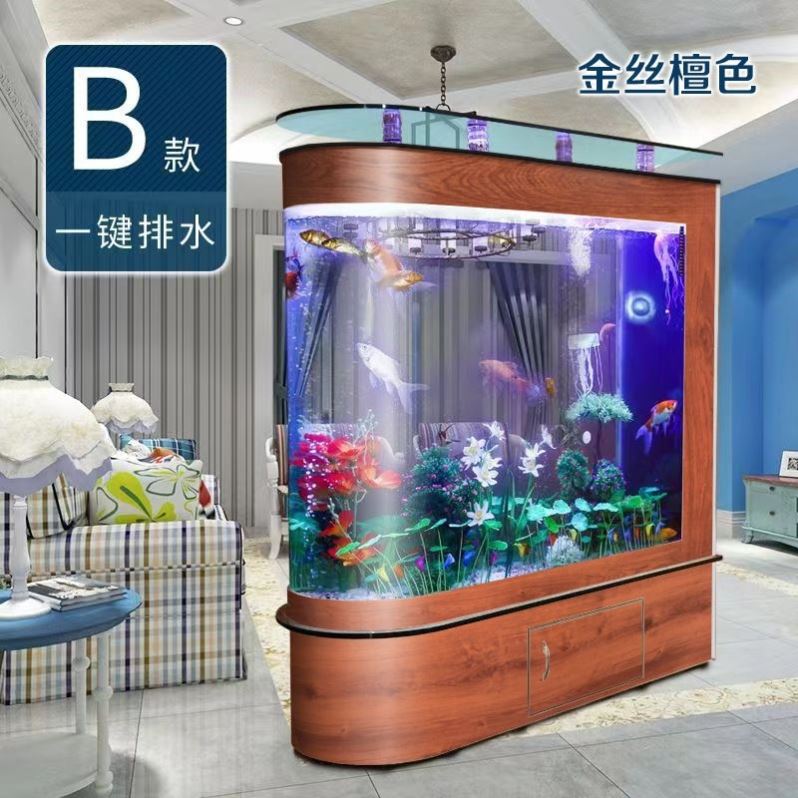 子弹头鱼缸水族箱生态屏风隔断 鱼缸1米1.2米1.5米长玻璃鱼缸