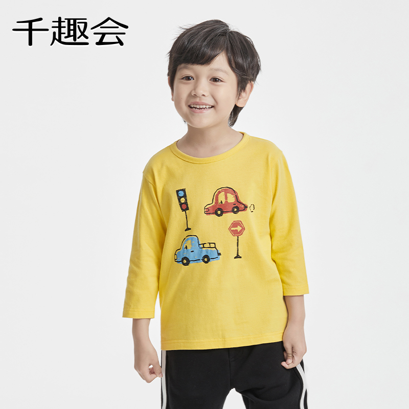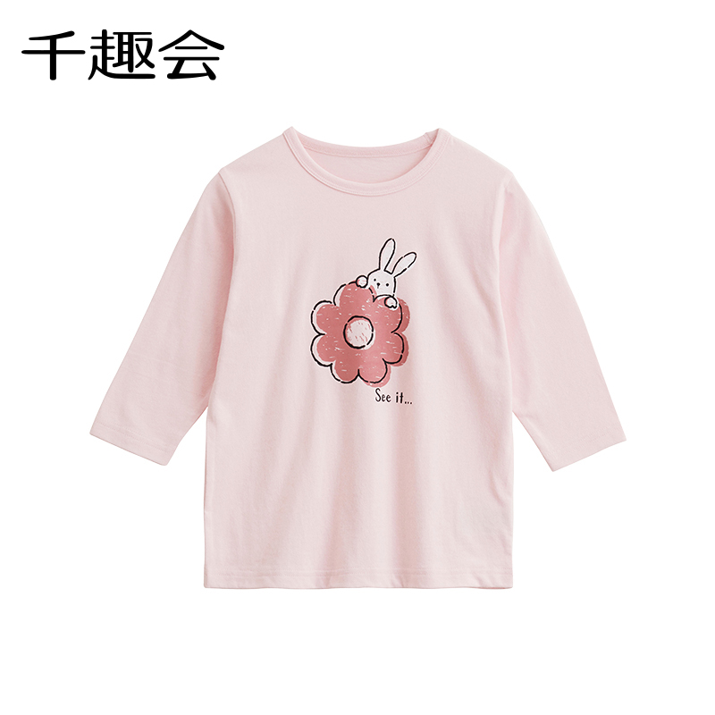 T恤 男女童卡通童趣印花棉质幼儿园宝宝七分袖 千趣会童装 25春秋款