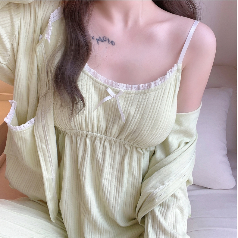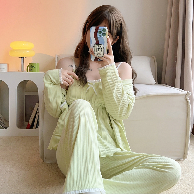 高档高级感黑色套装 悦内睡衣女春秋季 家居服薄款 秋天纯棉长袖 秋款