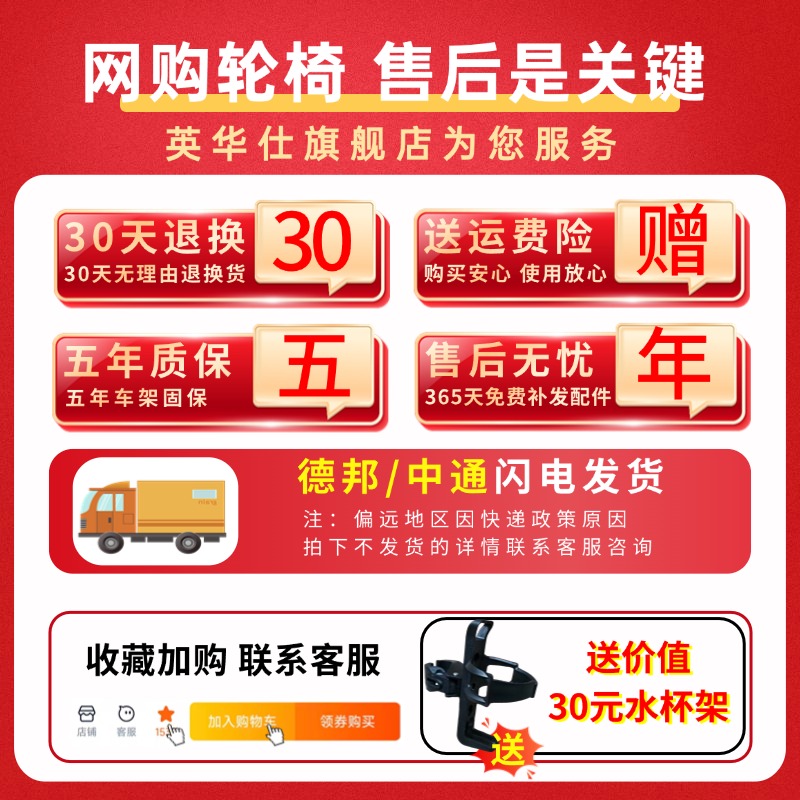 鱼跃轮椅车折叠轻便老人专用轻型瘫痪便携旅游代步骨折手动车小轮