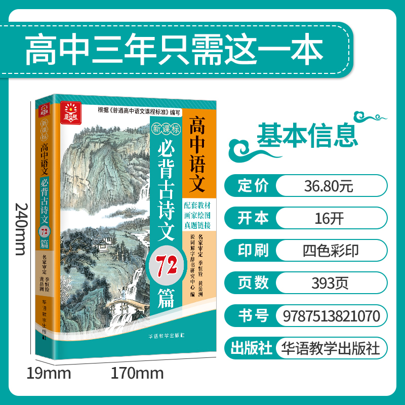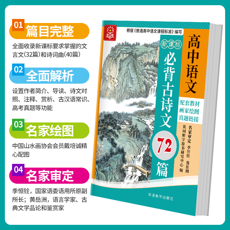 高中生高考语文古诗词曲文言文72篇 通用版 同步配套高中语文教材 四色版 高中语文必背古诗文72篇