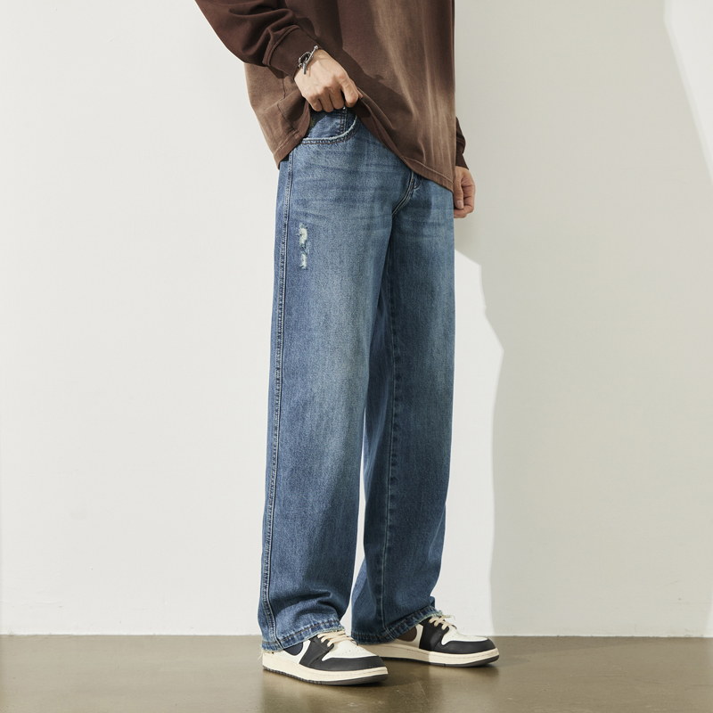 新款 2025秋季 宽松窄版 阔腿男装 美特斯邦威男士 直筒休闲裤 牛仔裤