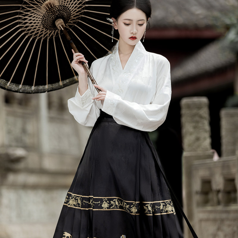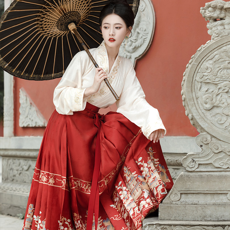 万里织造司原创明制汉服过年马面裙女半身裙敬酒服订婚服秋冬套装