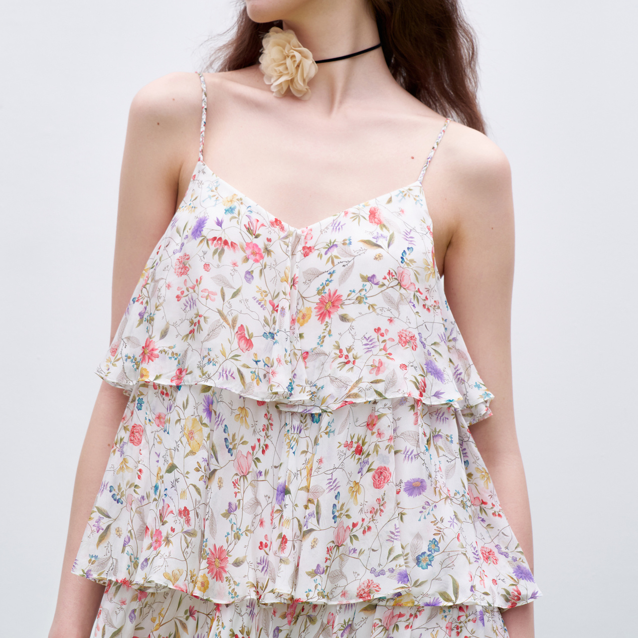 时尚 花长裙薄纱夏装 度假真丝连衣裙女 歌莉娅桑蚕丝法式 首降3折