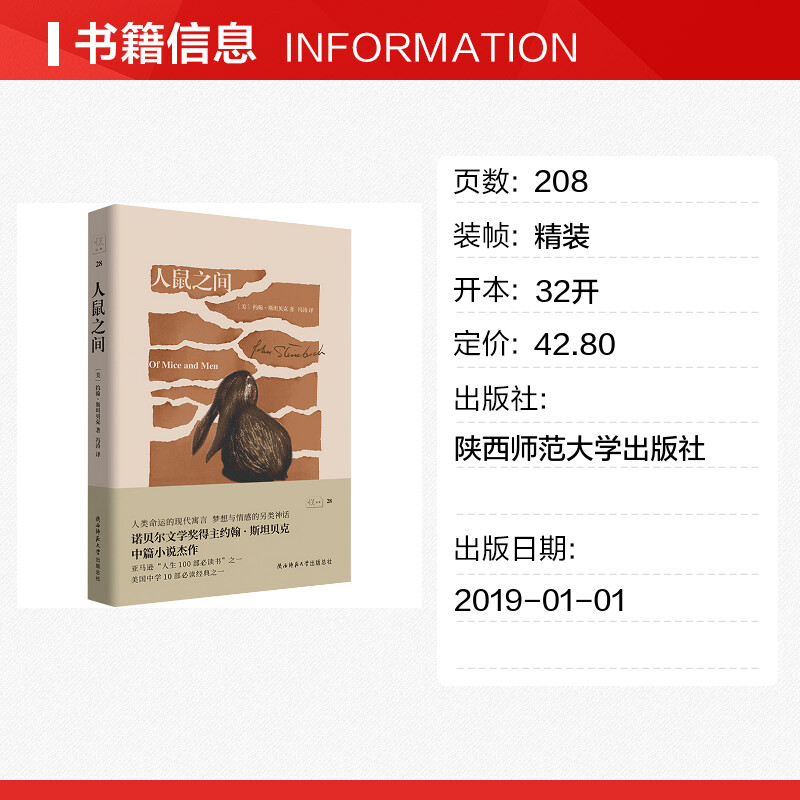 外国小说文学 社 约翰·斯坦贝克 陕西师范大学出版 图书籍 新华书店正版 译 冯涛 著 美 人鼠之间