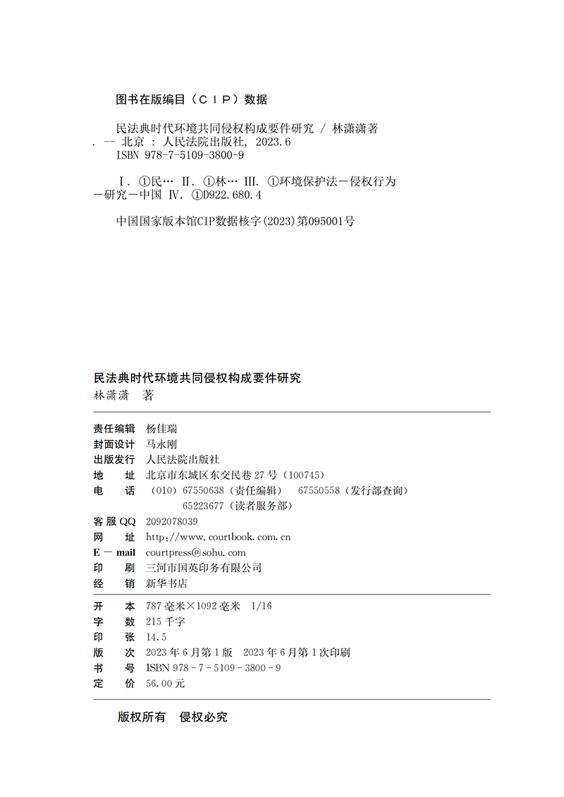 人民法院出版 正版 林潇潇 民法典时代环境共同侵权构成要件研究 社9787510938009 2023新书