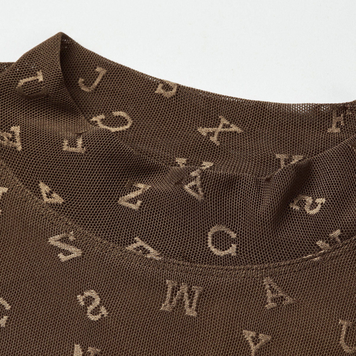 圆领网纱长裙 长袖 曼德诗高腰拼色连衣裙2025秋季 新款