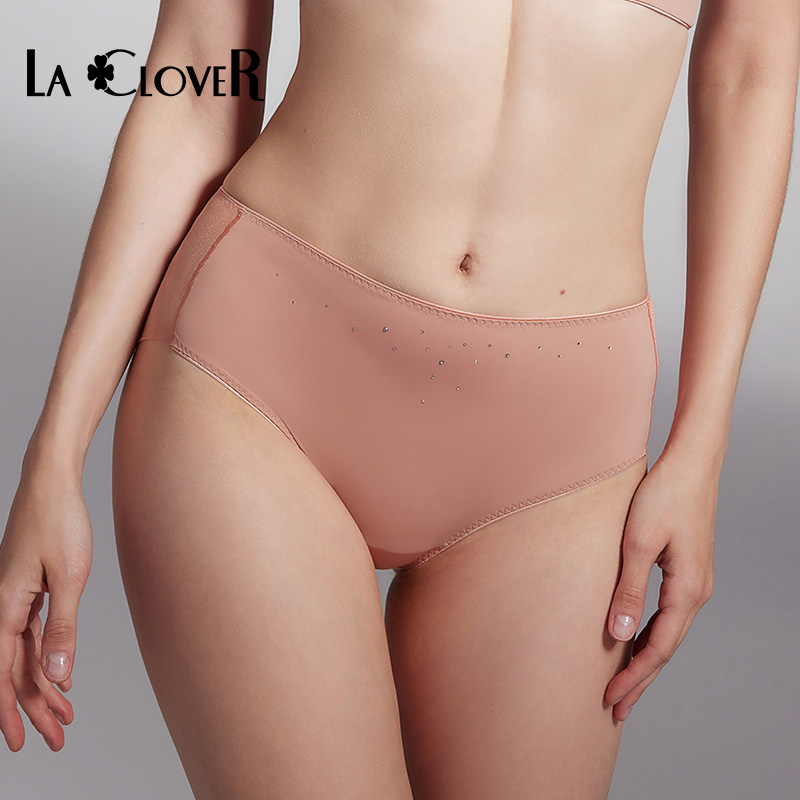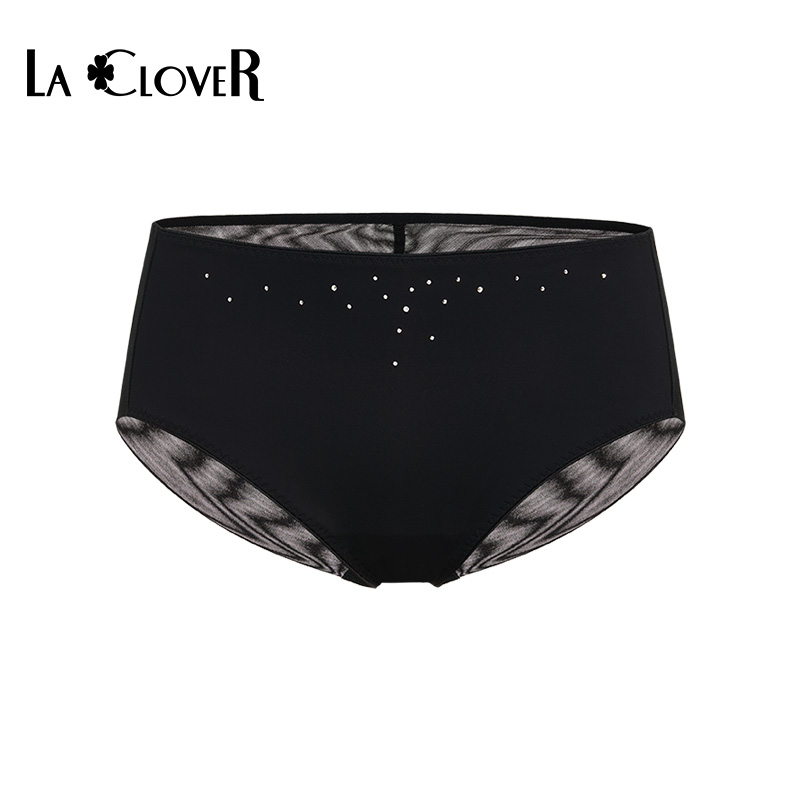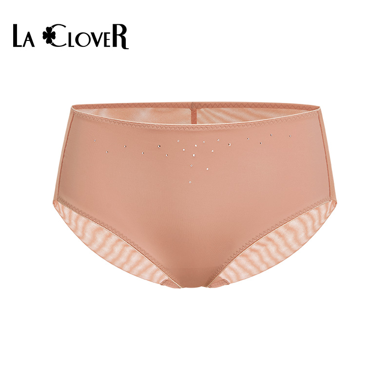 女士桑蚕丝底档不夹档平角裤 爱美丽3条装 10A抗菌棉感印花中腰内裤