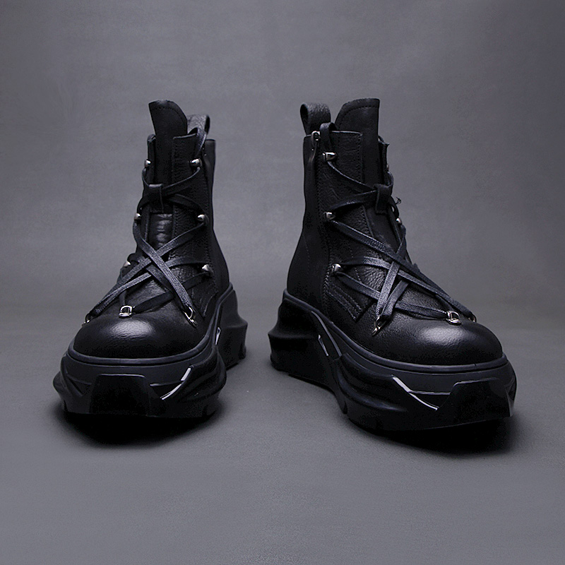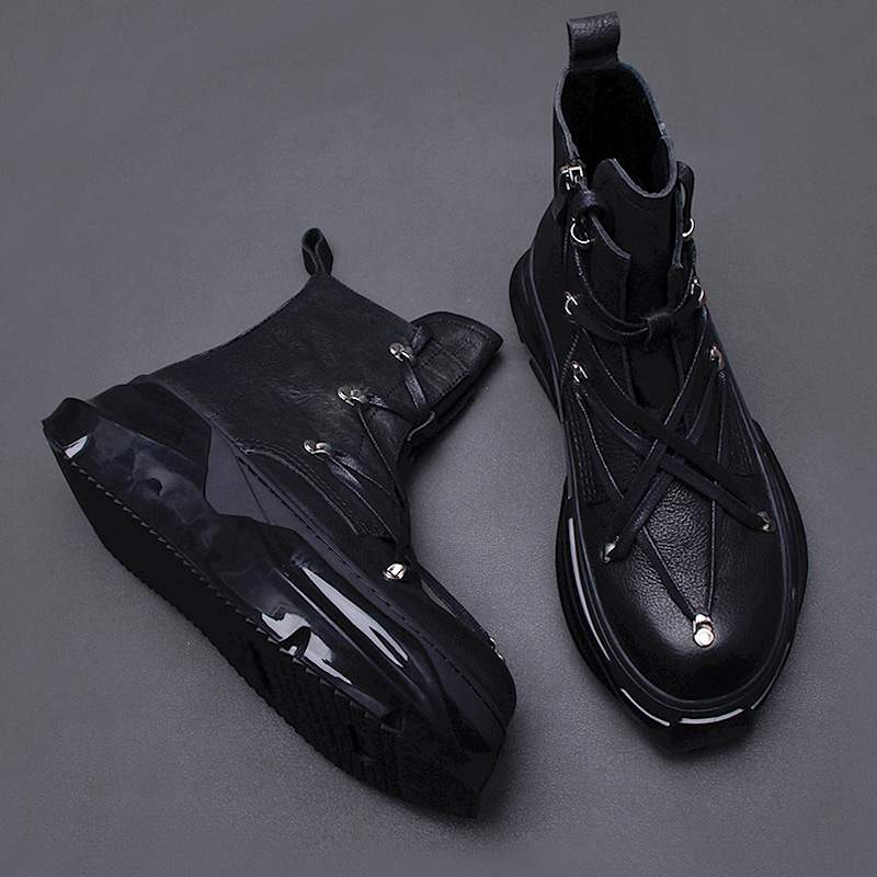 黑色增高靴子女时尚 新款 休闲皮面短靴 2025秋季 环球厚底马丁靴女款
