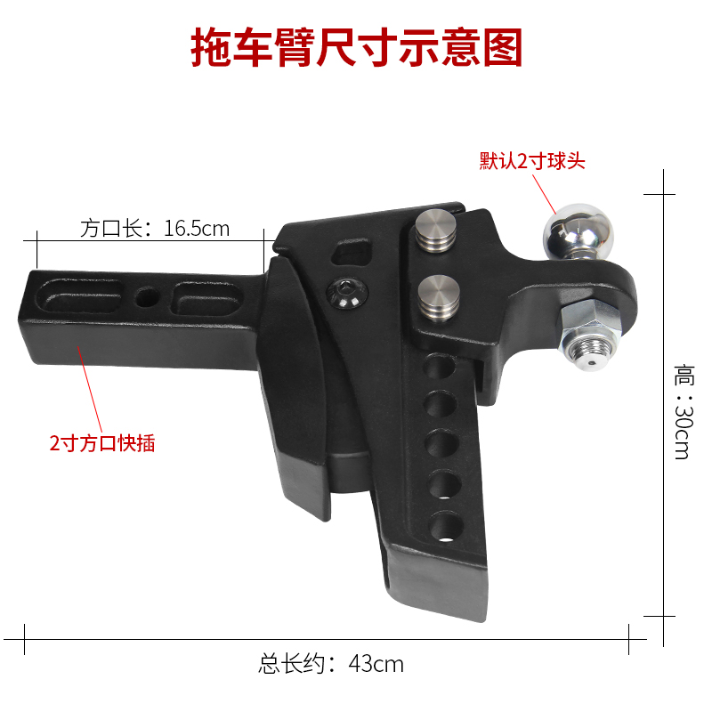 越野改装 房车拖挂拖车钩流氓钩可调节实心拖车臂拖车球2英寸50MM