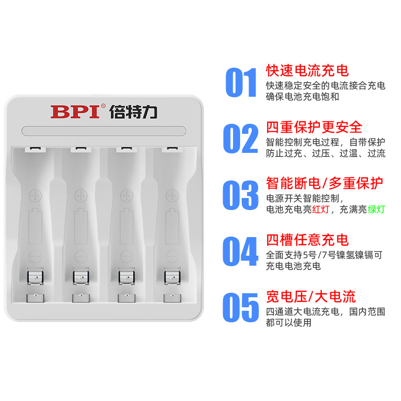 BPI电池闪充充电器5号7号智能快充通用玩具电视遥控器空调鼠标钟表闹钟AA五号AAA七号4槽8槽升级款 官方正品
