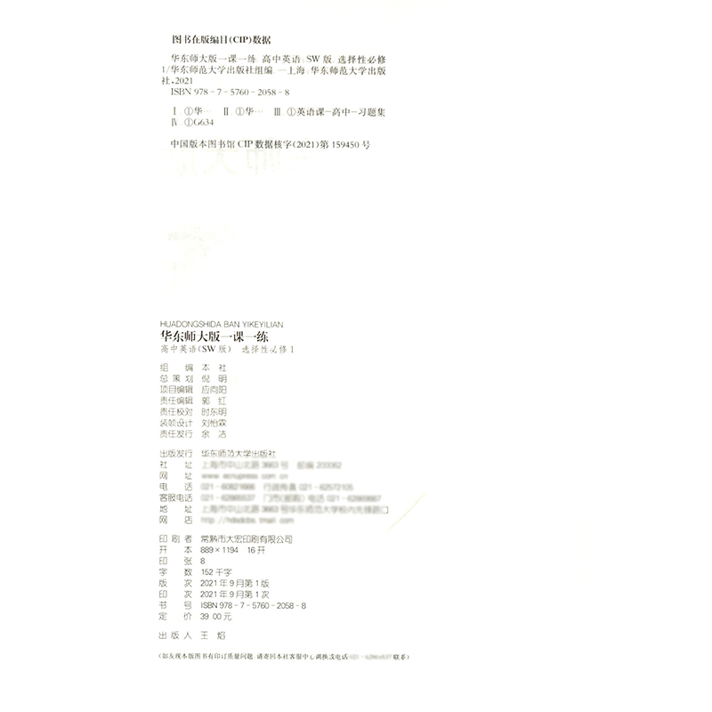华师大一课一练高中二年级上册第一学期上海高中英语教辅沪教版 华东师大版 选择性必修1上外版 SW版 一课一练高中英语