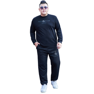 男装 加肥加大休闲运动装 胖子宽松圆领长袖 套装 秋 t恤长裤 毕蒙大码