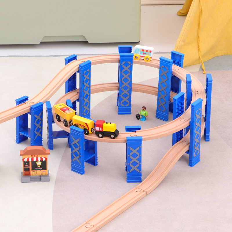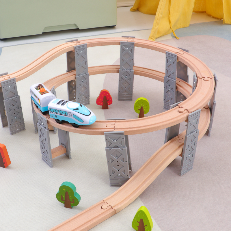 木质轨道车玩具男孩电动木头小火车儿童环形积木益智兼容米兔brio